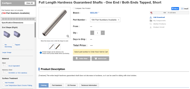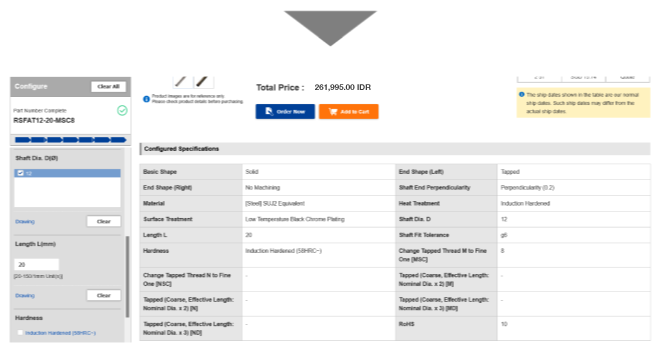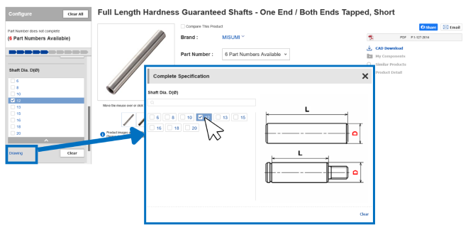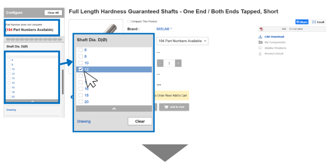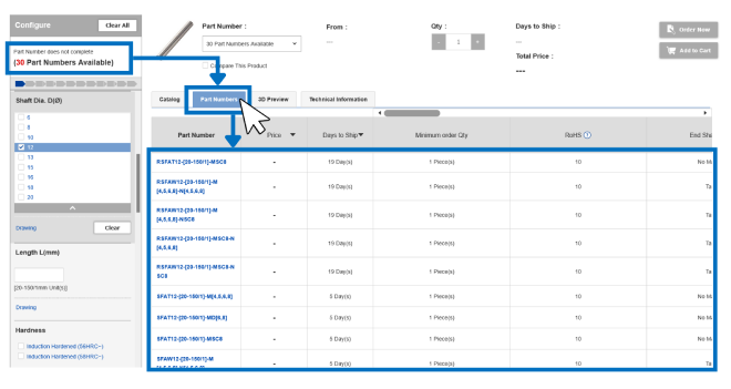 Select specifications & dimensions to narrow down candidate part numbers and select desired Part Number from the part numbers list.