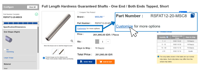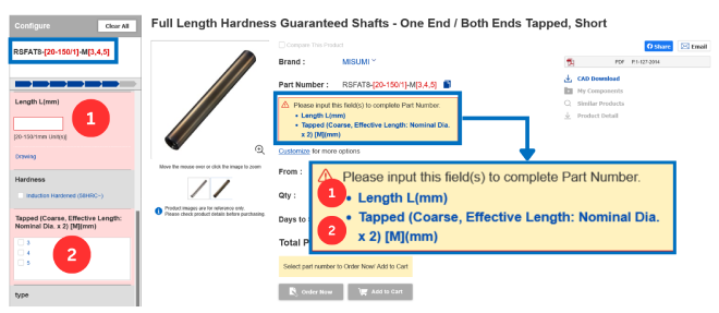 After selecting all requried configurations, the corresponding Part Number will be generated.