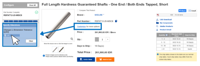 Fill the input fields to determine the specifications so that the options can be added to the cart and saved to My Components List.